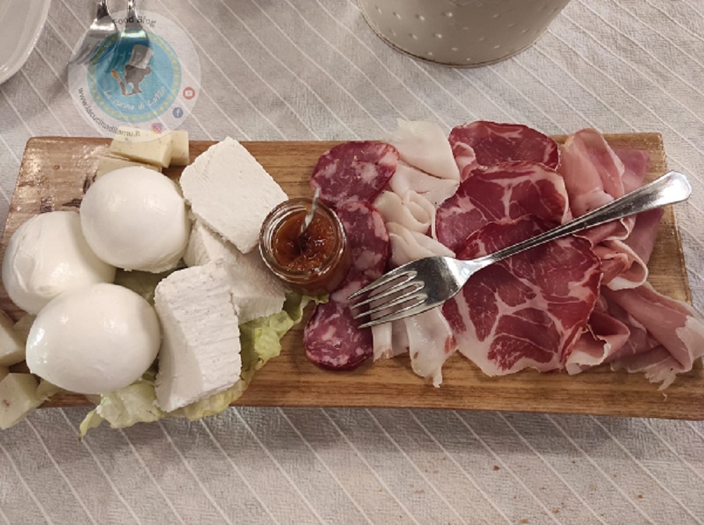 Abbiamo iniziato con l’antipasto, in primis il tagliere con salumi, mozzarella, ricotta e formaggi da gustare cn una marmellata artigianale.